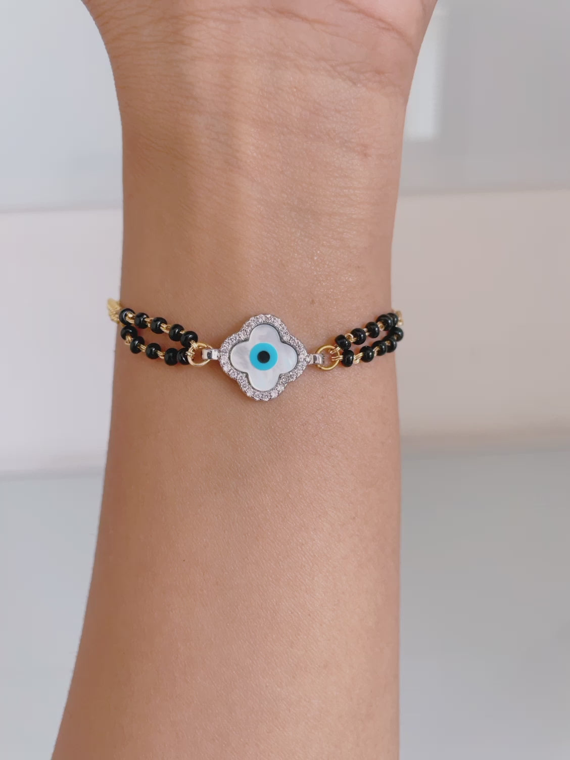 Personalised Clover Evil Eye Bracelet with Black Cord
